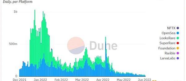 交易挖矿的效果非常好,Looksrare在1月推出交易挖矿之后,交易量直线飙升,一度超过了Opensea。