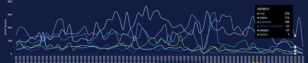 从趋势上看,Avax在8月,11月,3月的激励计划都起到了明显的正向作用。不过失去激励以后,最近两个月有所下滑;Ftm也是类似的趋势,不过下滑更为明显;SOL和Polygon基本都能维持在高位,Polygon的上升与最近黑客松也有很大关系;Near今年整体上保持了一个上升的势头。