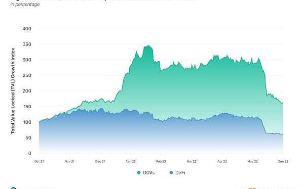 2021年第4季度以来的DOV与DeFi市场的增长率