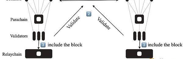 中继链是Polkadot的核心,平行链之间彼此独立,但统一连接到中继链,以共享其安全性。Collators逐一收集平行链上的交易、生成状态转换证明,提交给中继链,由Validators验证这些证明,并执行共识,在中继链上出块。Nominators负责挑选Validators,并需要为他们质押DOT,以保护中继链。