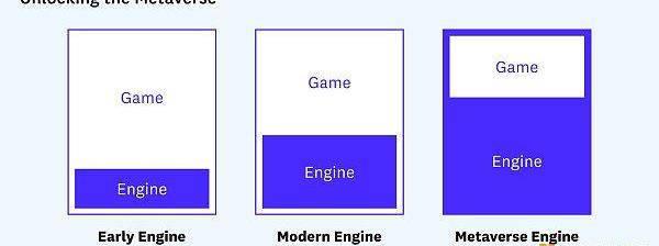 然而,在考虑元宇宙时,引擎扮演着更重要的角色。为了打破将一款游戏或体验与另一款游戏或体验隔开的墙,游戏可能会被封装并托管在引擎中,而不是相反。在这个扩展的视图中,引擎变成了平台,这些引擎之间的通信将在很大程度上定义我所认为的共享元宇宙。