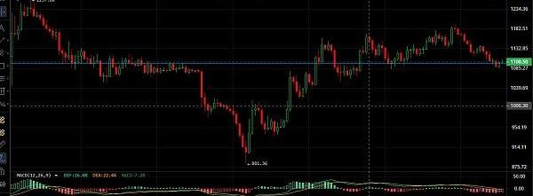 以太坊昨日一路震荡向上,高位触及1195一线承压回落,昨日文中给的多单有点可惜没给到进场机会,早间空头发力下破1100整数位跌至1085一线,目前币价在1102附近震荡,四小时级别来看,以太坊BOLL均线缩口平行,上方压制有下移迹象,MACD多头能量减量,进攻线与防守线双线有交叉趋势,KDJ三线则向下拐头,目前币价位于中轨上方运行,处于明显多空博弈阶段,若没有跌破1050一线逢低做多为主,1085-1060多目标1140-1180