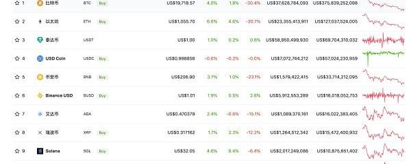 6月19日下午,两次跌破18000美元后,比特币又走出了反转态势。根据全球币价网站CoinGecko数据,截至6月19日18时30分,比特币报19718.57美元,24小时涨幅为1.8%,近7天以来跌幅为30.4%;以太坊报1055.70美元,24小时涨幅为4.6%,近7天以来跌幅为30.7%。