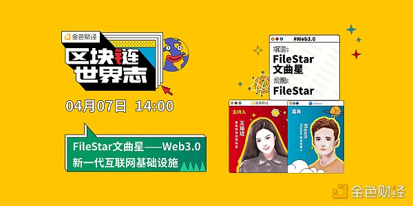 4月7日14:00,金色财经请到FileStar技术负责人Moon做客「区块链·世界志」直播间,深入探索FileStar在新一代互联网基础设施上的布局。