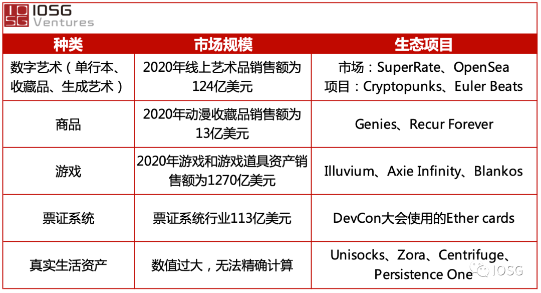 现阶段流行的NFT使用案例是数字艺术、收藏品和游戏。然而使用NFT作为一种新的分发方式和一些商品、票证、真实生活资产、游戏道具等的销售方式,这种模式还在持续的探索中。