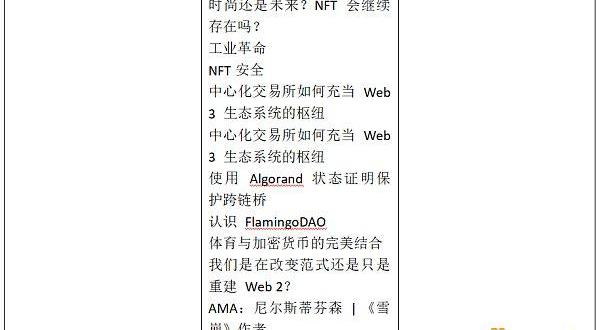 演讲者包括FTX首席执行官SamBankman-Fried、富达投资董事长兼首席执行官艾比·约翰逊、作家尼尔史蒂芬森、ZORA社区负责人Latashá?、BigGreen联合创始人兼首席执行官KimbalMusk、CoinShares首席安全官、贝宝总裁兼首席执行官、天使投资人和企业家巴拉吉·斯里尼瓦桑、前脸书产品经理、美国财政部副部长、币安创始人兼CEO赵长鹏、新闻自由主席爱德华斯诺登……