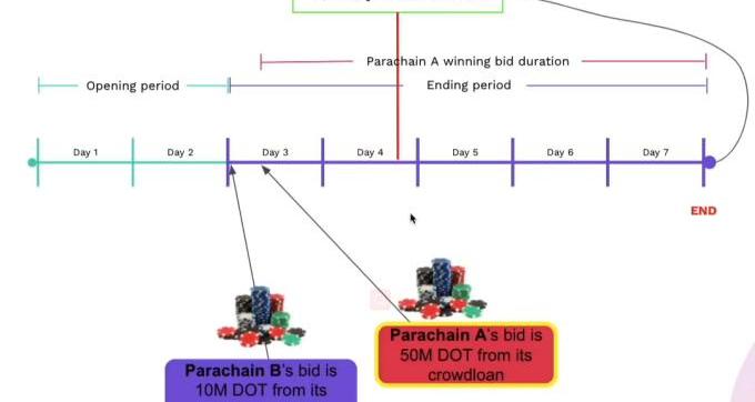 其实一次插槽拍卖的结果并不是只有一个获胜者,一个插槽的时间为2年,且分为8个租赁期(一个租赁期为3个月),所以平行链竞拍的只是其中的租赁期,当然有能力的链也可以租满两年(也就意味着在所有周期的竞拍中均能获胜),一个租赁期内可以有多场Auction。