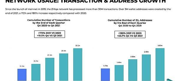 从2020Q4到2021Q4,累积交易数量和网络地址数都增长了大约3倍