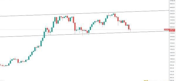 BTC跌破关键支撑39000美金一线后迎来加速回落,最低再次逼近去年5月大跌底部支撑区,这一带位于斐波那契0.5回撤区域,历史走势上这一带都比较重要,包括去年1月BTC二次主升行情启动前回踩区域也是这一带,也贴近双顶通道下沿支撑区,昨晚下探最低也是靠近这一带迎来将近5000美金快速反弹,不过反弹并非反转,后面有再次探底的可能,那么就要关注这一带能否再次形成底部结构,这将决定后面一波中期反弹行情能否展开,之前分析提到过月线MACD死叉后面往往伴随一波爆空反弹,从69000美金到目前月线三连阴,一直未出现像样的反弹,后面有反弹修复需求,大部分主流币也已跌到低位水平,同样有反弹需求,目前再大幅杀跌的做法不合适,趋势支撑带31000-33000美金。