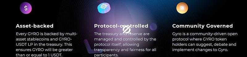 当GYRO交易价格<1USDT时,协议会买回并销毁相应的GYRO;当GYRO交易价格>1USDT时,协议会铸造并出售新的GYRO;