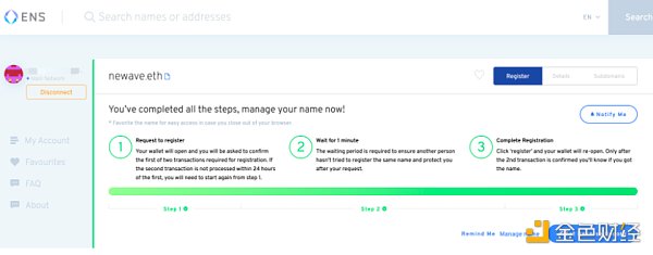 连接你的以太坊钱包(小狐狸),检索你想注册的域名。