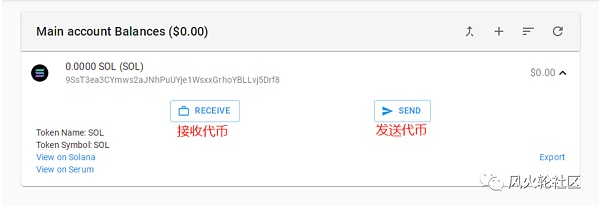 钱包创建完成可以看到上面这个界面,点receive就会出来你这个sol钱包的接收地址。