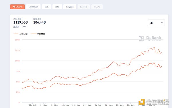 DeFi项目锁定资产前十排名及锁仓量,数据来源:Debank