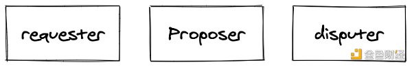 Optimistic Oracle 系统有三类参与者:请求者(请求价格信息的合约)、提议者(回传价格信息的链下参与者)和争议者(能够对不认可的价格提出争议的链下参与者)。