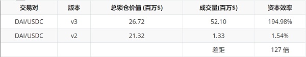 2.从所有交易对来看,目前 v3 的资本效率大约是 v2 的 4 倍;