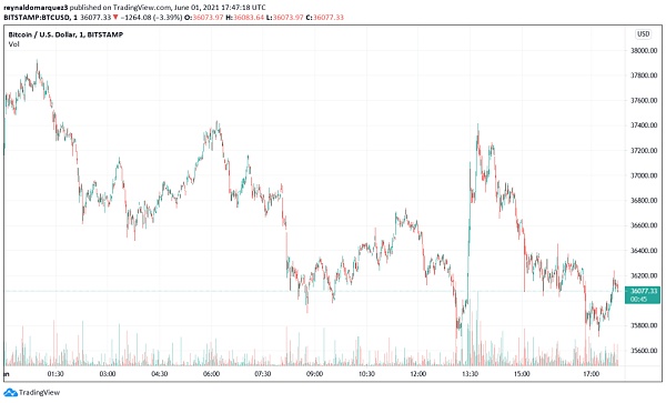 当前比特币的价格为36,112美元,在所有时间框架内都有亏损,在撰写本报告时,月度波动受到市场的影响最大,损失了37.3%。