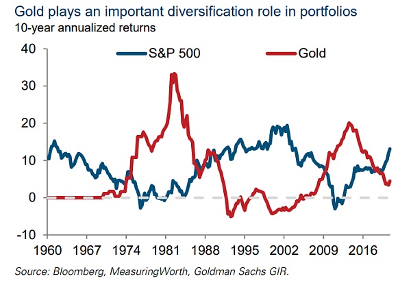 在 20 世纪中叶当通货膨胀加速,投资者寻求如何保护资产实际价值时,黄金是自然的选择。当时,世界主要货币通过布雷顿森林体系黄金兑换标准通过美元与黄金挂钩,在大萧条之前,大多数货币以及大多数美国国债都直接由黄金支撑。美国政府以美元提供黄金的官方价格,在18世纪90年代至20世纪70年代的近两个世纪中,这一价格仅变化了两次。20世纪60年代,在金汇兑本位制下,黄金高于其官方标价的交易是观察美元贬值压力的最明显方式。简而言之,在二战后的大部分时间里,黄金价格、货币稳定性和货币的实际价值之间有着密切的联系——这使其成为投资组合的明显通胀对冲工具。