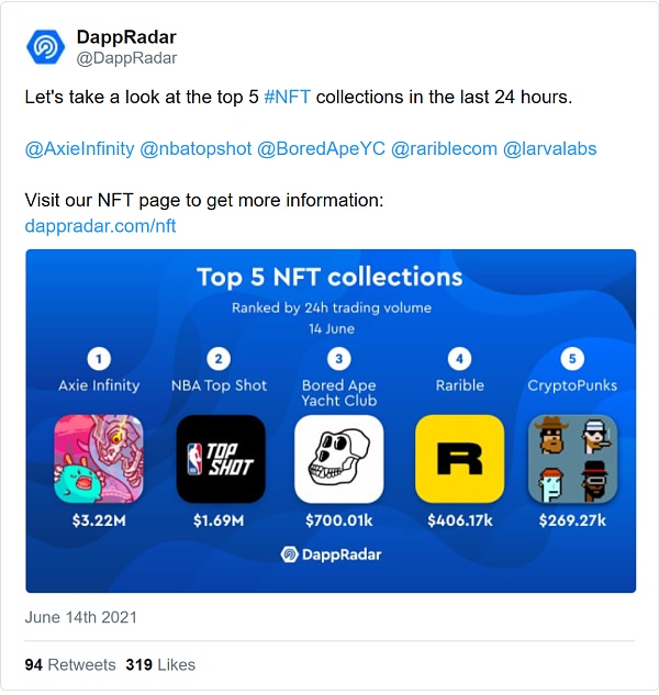 围绕Axie Infinity的交易量最近在NFT生态系统中占主导地位 ?