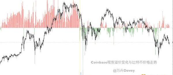 万卉关注的所谓溢价,指的是比特币在Coinbase和诸如Binance交易所之间的差价。