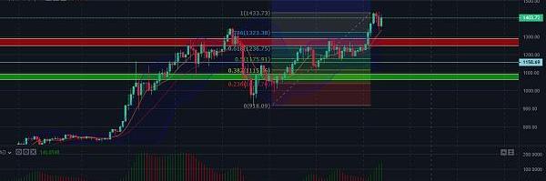 由于多头的强劲势头,ETH价格在1月9日和16日突破了1435.30美元的盘中高点。