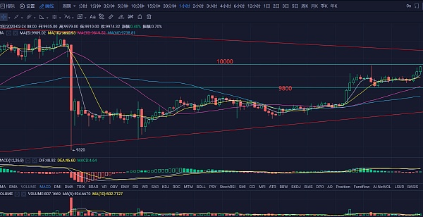 1900/1/1 0:00:00近期多次回踩30日线确认支撑有效后开启反弹,目前价格涨至9900美元附近,站上所有均线之上,5日有拐头上行趋势,短线有再次走强迹象,其余中长期均线依旧保持向上姿态,大方向还是处于多头趋势.