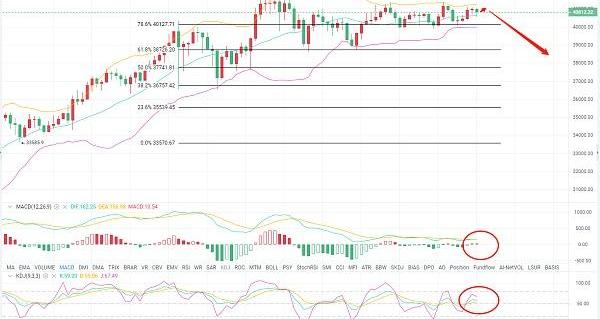 40850-40750附近空单进场,目标点位40550-40450,破位看40150,