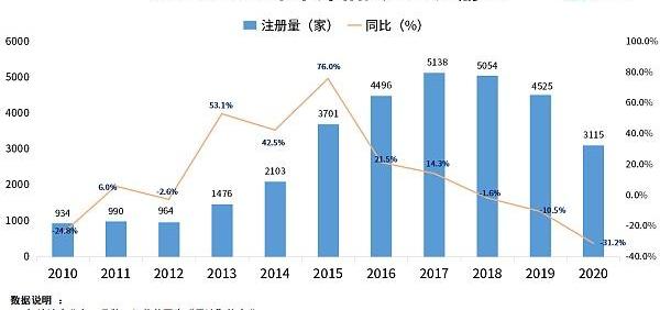 日前,汇源集团创始人、董事长朱新礼因未按时履行法律义务被法院强制执行,涉及执行标的为1.086亿,一代“果汁大王”终将落幕。企查查数据显示,目前我国共有2.4万家果汁相关企业,广东以4800余家企业排名第一,河南、山东分列二三名。从近年来果汁行业发展的情况来看,相关企业年注册量在2017年达到5138家的峰值,随后连续三年下降,2020年新注册企业3115家,同比下降31.2%,其中四季度新注册486家。
