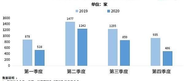 从季度注册量来看,企查查数据显示,2020年第二季度注册量最多,为1242家。第一季度的注册量最少,为528家。第三、四季度注册量分别为859家、486家。