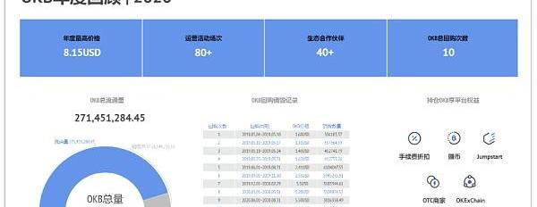 OKB全球生态伙伴继续扩张。OKB在2020年围绕OKEx平台和外部生态合作伙伴持续扩张。其中,基于OKEx平台内部面向用户累计提供15项权益,包括OKEx手续费折扣、OKExJumpstart预约额度、认证商家等权益;全年拓展生态合作伙伴41个,覆盖支付、交易、行情软件、钱包、借贷理财、技术安全、旅游、生活服务、娱乐、社交、电子合同、O2O等数十个重要领域。