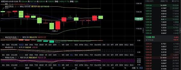 以太反弹至1273一线遇压回调,震荡下挫,截至早间5时跌至1135一线,触底走反弹,目前币价承压于中轨一线,徘徊在1200上方震荡整理,?以太坊4小时图上看,指标上MACD双线形成死叉,行情还有待修复。价格受布林中轨支撑再度上探。但是BTC连续创出新高,留给ETH的时间并不多,KDJ,J线抬头向上,短期以太有走反弹的需求,但仍需谨防行情再度下跌洗盘,不建议盲目追涨,稳健还是回调多单为主,破位之后顺势跟进。行情大涨大跌,建议各位币友带好止盈止损分层入场合理把握收益。