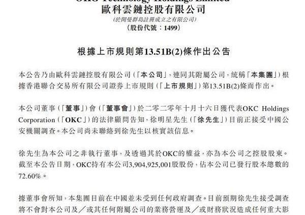 不过对市场影响最大的还是徐明星。10月16日,OKEx发布公告称,由于近日公司部分私钥负责人正在配合机关调查,目前正处于失联状态导致无法完成授权。因此于2020年10月16日11时开始,暂停用户提币。两日后,OKCoin关联公司欧科云链控股有限公司发布公告,证实了徐明星正在接受机关调查的消息。圈内都在猜测,徐明星被带走,事涉。