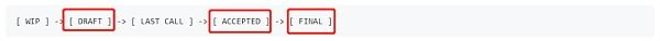 “Accepted”是指已被移交开发人员安排实施的提案,这个提案基本上进入最终状态。“Final”是指这个提案已经被社区执行和采纳。