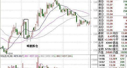 4、暗渡陈仓:在拉升途中,股价莫名其妙地拉出一根缩量大阴线,但在第二天或第三天即止跌企稳,然后在成交量的配合下,股价得拾升势。