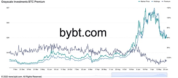 GBTC溢价几个月来一直为负 资料来源:ByBt.com