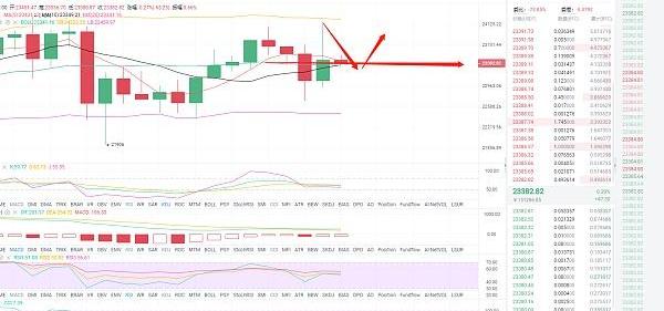 比特币行情分析:在今天的白盘行情中,比特币早间破位上行,价格最高上至24000并未企稳,随后行情承压回调,上行力度逐渐减弱,一直处在震荡行情中,两次触底23350附近位置多次反弹最高未过23700。目前晚间更是跌破23300一线支撑,再度走出一波600点的跌幅,低位触及22700一线才开始反弹,目前价格在23500位置附近波动。