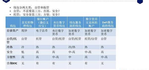 Defi钱包里存放的是加密资产,这不是核心,核心是自管还是托管,是交给别人管还是自己管。Defi钱包的好处是自己管,更安全。放在交易所,万一被黑了呢?放在银行丢了一般有赔偿,交易所被黑了一般不会赔偿。从方便性看,放在交易所比较方便,但安全性比较差。