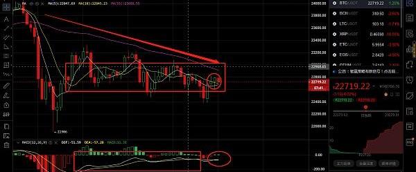 综合建议:大饼可以等回调至22800.22900.23000价位分别进场空单,止盈看第一看到22500.第二看到22000。止损放到23280?23350,因为如果想拿趋势单的话,仓位必须要大,如果只是想撸短线的朋友,可以找我要短线点位。