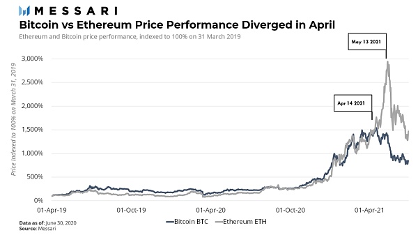 然而,在比特币的抛售中,引力开始起作用,每一种代币都是相关的,这一次也不例外。虽然 ETH 的表现在 4 月中旬前后出现与比特币背离,但在 6 月回落了 16%,整体表现仍优于比特币。