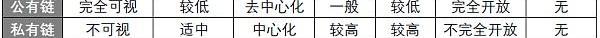 下表展示了公有链、私有链和混合链的特点比较: