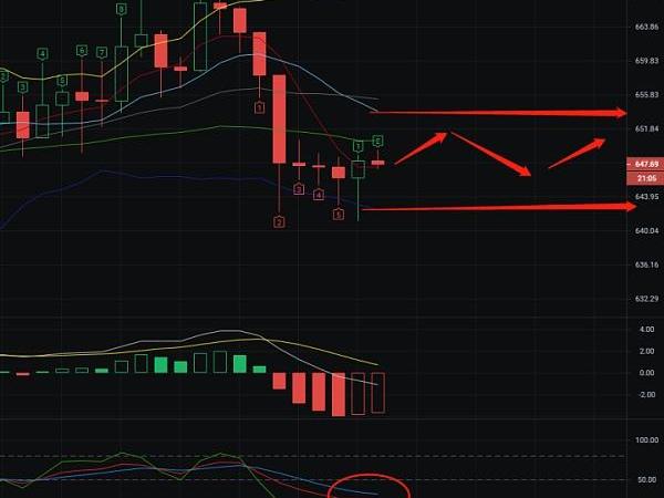 642-646附近可进多,目标648-653,破位继续上看。止损带4个点即可