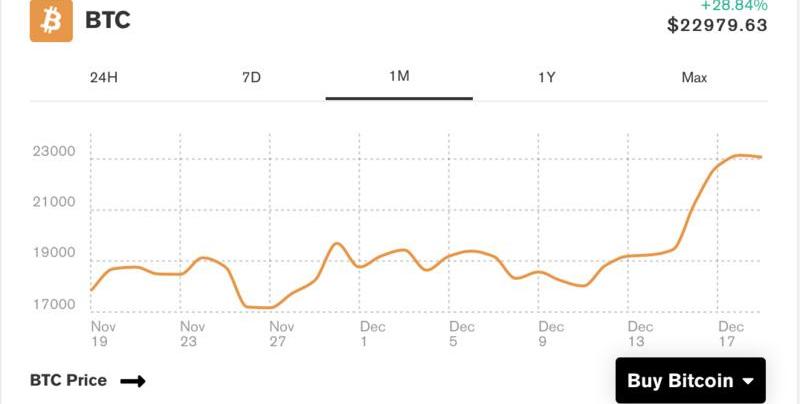 黄金投资者、比特币评论家PeterSchiff也将比特币最近的价格上涨至19800美元归因于GBTC套利交易。他在12月2日的一条推文中说:“由于比特币自身的购买推高了比特币的价格,更多的买家因此被吸引进入市场。”