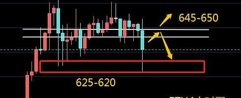 昨天以太坊白盘在区间震荡,晚间大饼拉升的时候,以太没有跟涨,跟跌倒是很快。昨天给出的空单策略在650-660的区间进场,利润空间还是不错的。刚刚的一波下跌刺破了之前的低点,打到621附近开始反抽,那么我们可以选择在625-620的区间去布局多单,如若破位,多单就选择在615一线进场。上方给到645-650的区间我们可以选择进场空,币价企稳650就要暂时放弃空单进场。利润空间自行把握,做好风控。