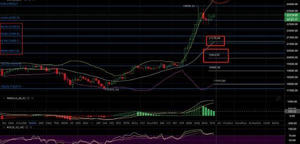 但是操作上,止盈后的币友注意,回踩第一个支撑位在21179——21068刀、第二个支撑位在19922——19336刀、剩下的就是上涨趋势线的短期支撑位18670.92刀。上面这些支撑位,回踩止跌都是币友们上车加仓的好机会。尤其是上涨趋势线短期支撑位18670.92刀,只要收盘价不跌破它,哪里止跌哪里都可以加仓、补仓。