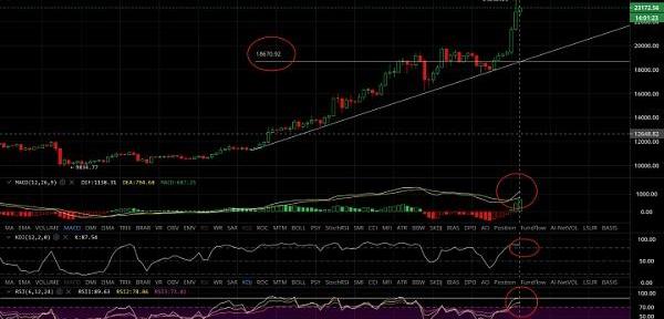 大家好,我是紫狮财经CEO,Hyrik老师。昨天的文章《突破两万刀的比特币,今日又暴涨超过10%,主流币啥时候轮动暴涨啊?》中我就反复给币友们强调一个重要的观点,那就是币友们疯狂了吗?从前天比特币彻底突破掉20000刀后,继续走一波昨天那种单日超10%的暴涨行情开始。我这边就出现了一些稍微明显的FOMO现象。那就是跑来问还能不能加仓,即便是那些已经满仓了的币友,都还跑来问还能不能加仓。当我反问说,你不是满仓了吗?得到的回答是我还有一点闲置资金,也想加进来。这是一个散户开始积极入场的迹象。同样这样表明很多之前观望的投币友开始安耐不住了,而投进来获利不错的币友开始贪婪于投入的太少了。