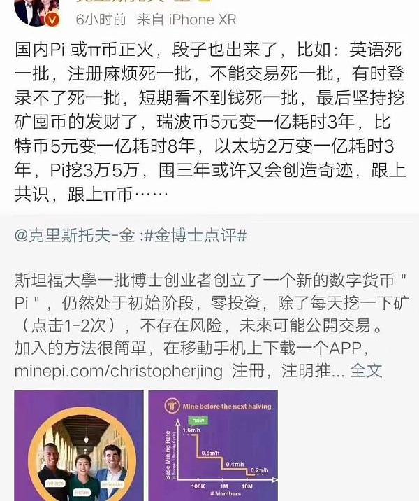 这样的数字货币历史性现象怎么少得了我们伟大的金博士评论,就在今天上午8点多金博士发布微博:这是我在二周前在一系列英文财经平台,上发出的比特币更新预测,比币今天牛气冲天,一口气突破20000、21000大关,是否站稳不重要,大趋势更重要,我一直持有加密数字币,不太多。我习惯提前预测政经事件,从不打马后炮,因为这是个人公信力和影响力的第一基石,这也是为?何我一直热情推广?斯坦福大学毕业生创办的免费?移动数字币(Pi)?的原因之一。金博士之前已经介绍过了.