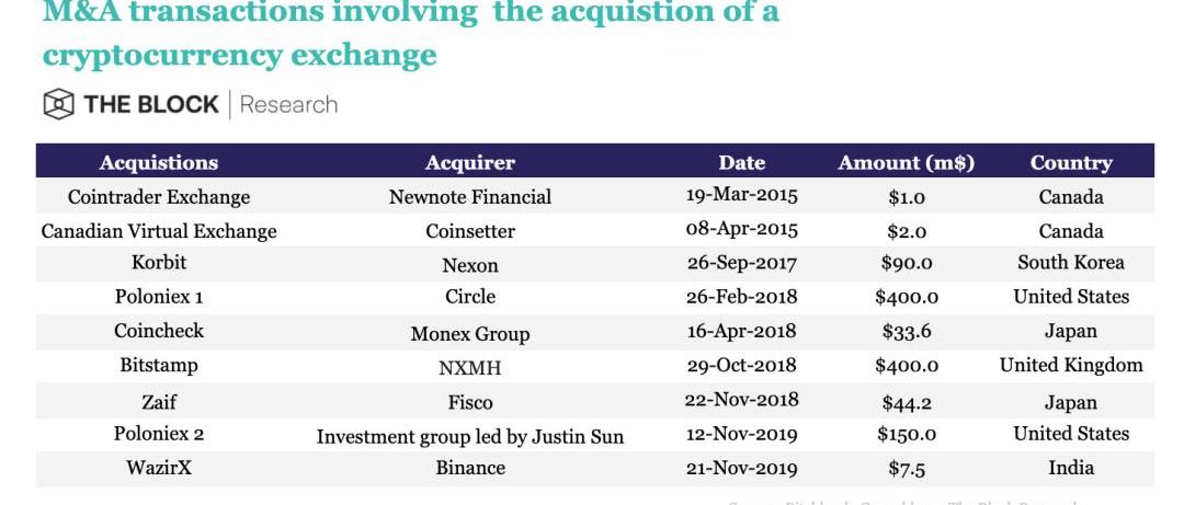 随着企业之间的竞争开始走向整合,加密货币交易所的并购活动在2017年开始流行。