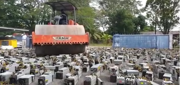 近期,比特币矿机被马来西亚用压路机碾碎的视频在网络上传播着。海外媒体报道,被碾碎的矿机有1000多台,系比特币矿工非法使用的设备。这些设备在2月至4月期间被查获,价值125.53万美元,有8人因使用偷来的电力参与采矿活动而被捕。
