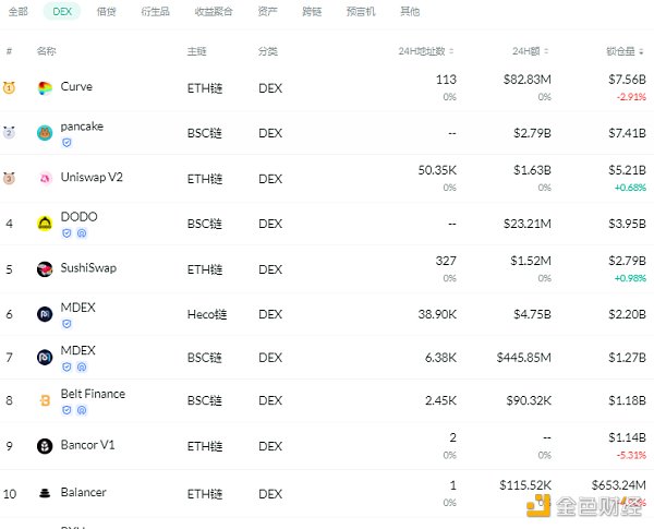 过去24小时去中心化交易所的交易量数据来源:Debank