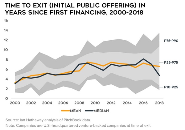第一轮融资到退出(上市)的时间(2000-2018) 来源:Ian Hathaway