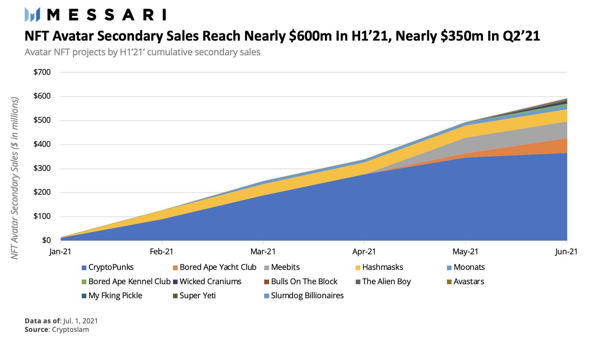 Art Blocks崛起而其他主要平台相对下降的一个解释是,市场对生成性艺术作品的需求更加广泛。随着Art Blocks的复兴,像Bored Apes Yacht Club这样的生成性化身项目也在上个季度蓬勃发展。